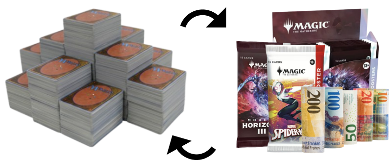Es kann sich sehr lohnen, scheinbar wertlose Magic Bulk Karten zu verkaufen. Bei Amazingtoys.ch in Zürich ist der Verkauf direkt, einfach und sicher möglich. Der Gegenwert wird direkt in Cash oder Store-Guthaben ausgezahlt.