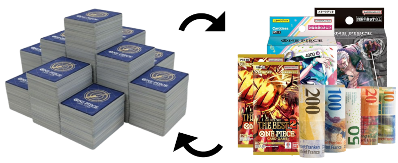 Es kann sich sehr lohnen, scheinbar wertlose One Piece Bulk Karten zu verkaufen. Bei Amazingtoys.ch in Zürich ist der Verkauf direkt, einfach und sicher möglich. Der Gegenwert wird direkt in Cash oder Store-Guthaben ausgezahlt.